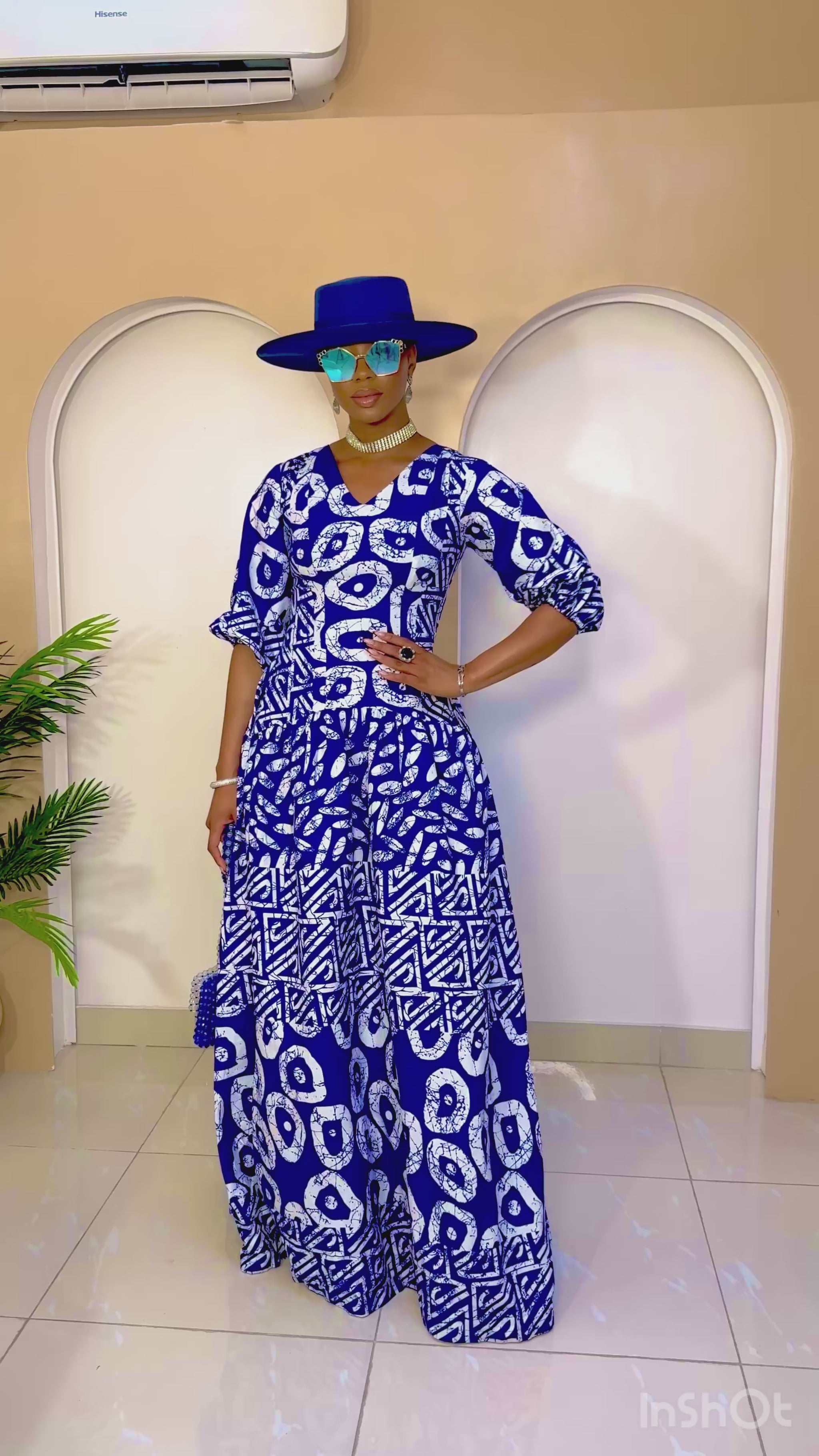 Step into elegance with the Nkali Ankara Dress, a timeless blend of culture and contemporary design. Designed in the U.S. and hand-crafted in Africa, this full-length dress is made from azure blue and white Ankara fabric adorned with a vibrant cultural print.